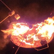 Sozusagen als Nachtisch nahmen viele Kinder begeistert das Angebot an, Marshmallows an langen Stäben über den Grillschalen zu rösten.